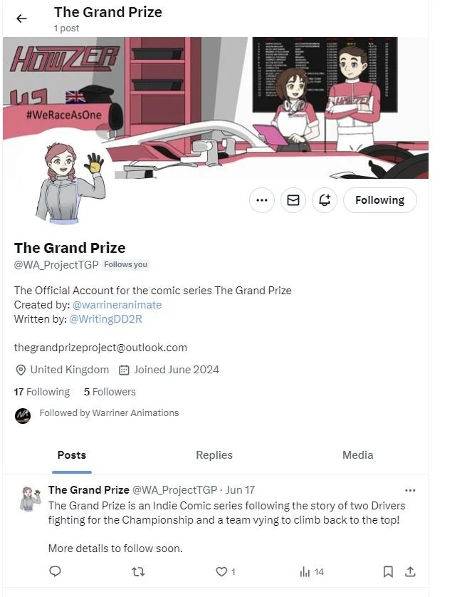 Writer for the online indie comic, The Grand Prize, created by Warriner Animations.